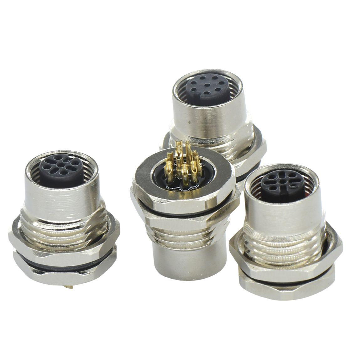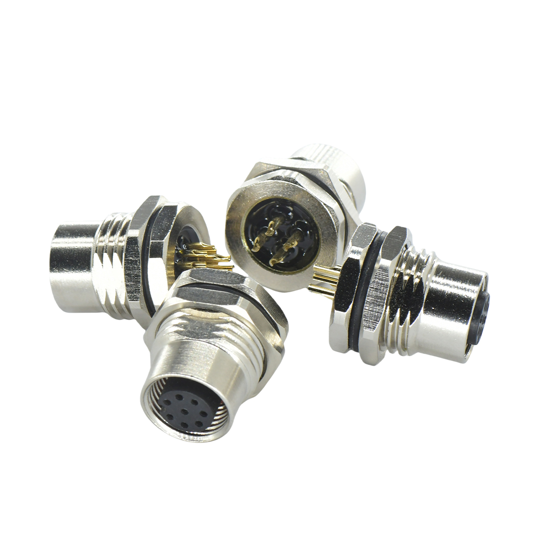 M12 front locking panel female straight connector, using solder wire structure, aperture counterpoise M16 size, design standard IEC 61076-2-101, is one of the most commonly used connectors in the field of factory automation.