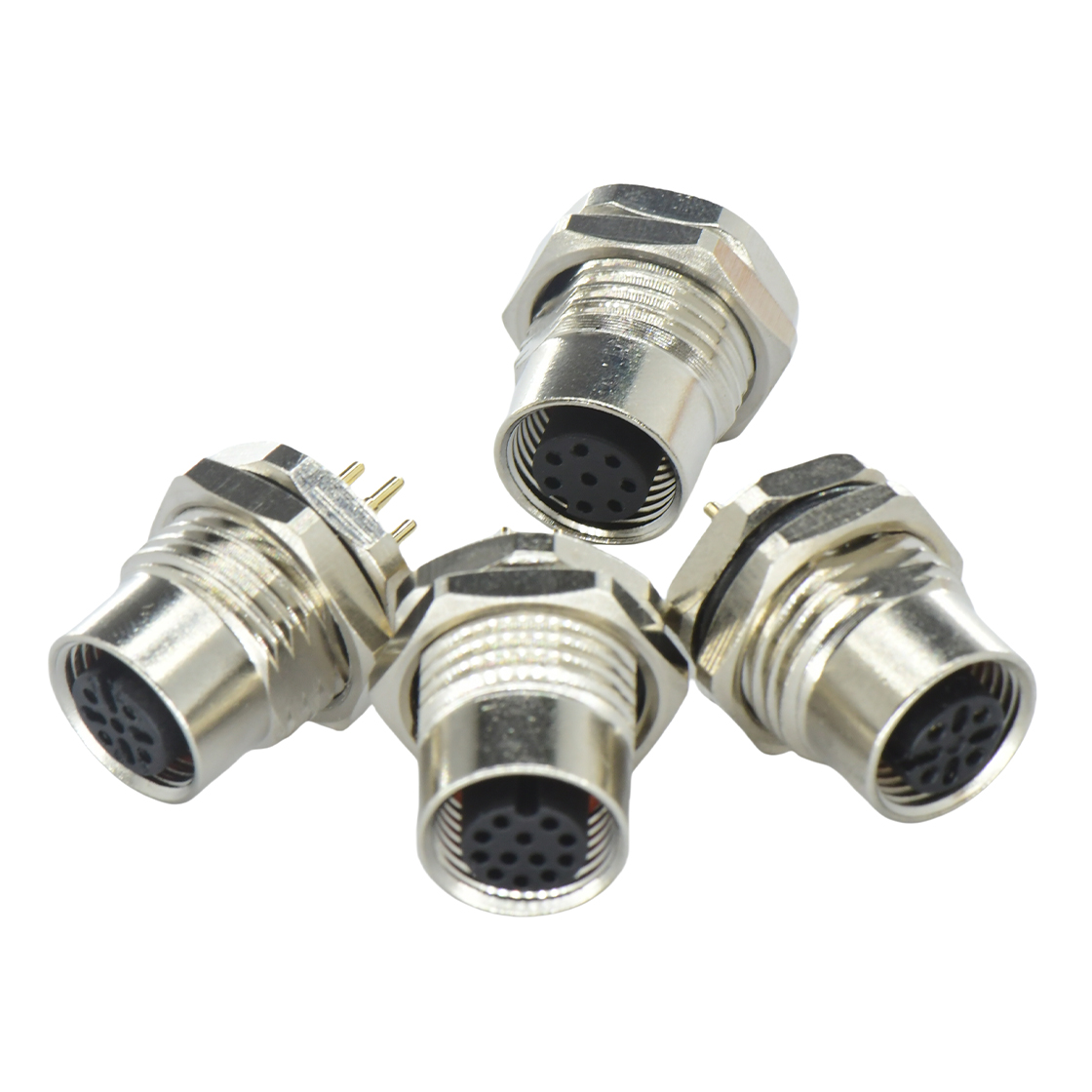 M12 front locking panel female straight connector, using PCB structure, aperture counter M16 size, design standard IEC 61076-2-101, is one of the most commonly used connectors in the field of factory automation