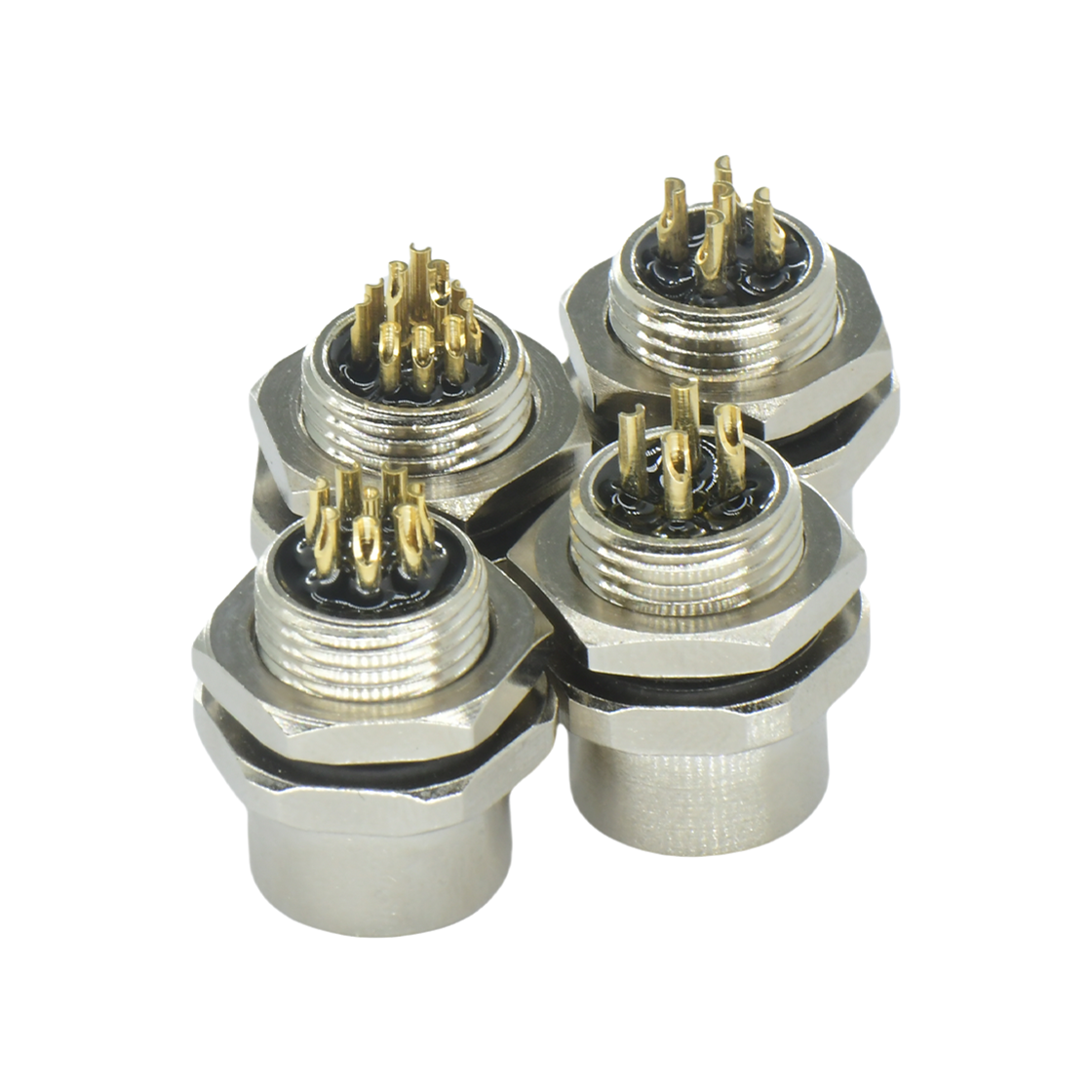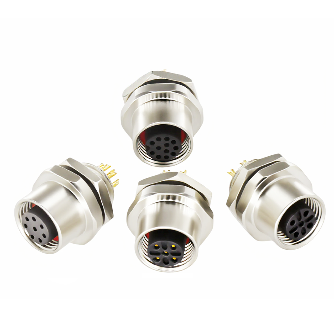 M12 rear locking panel female straight connector, using solder wire structure, aperture counterpoise M12 size, design standard IEC 61076-2-101, is one of the most commonly used connectors in the field of factory automation