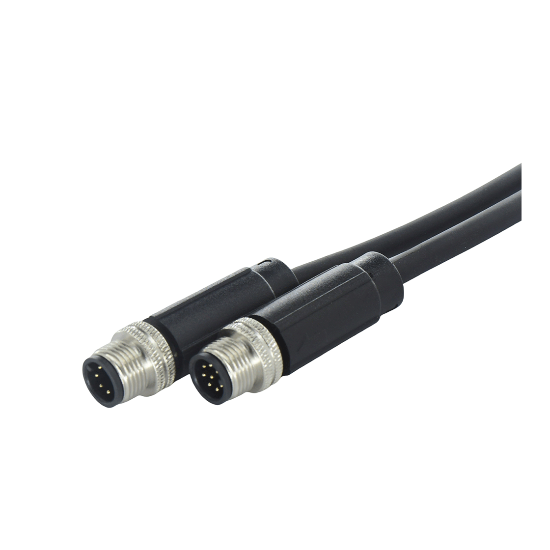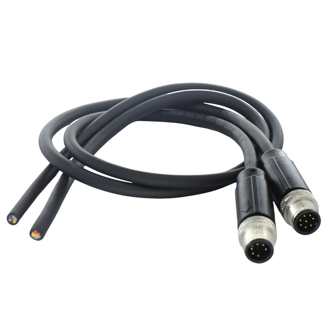 M12 male adult wire end connectors with soldered wire construction, straight double mesh screws and customizable shielding for use in extreme industrial environments.